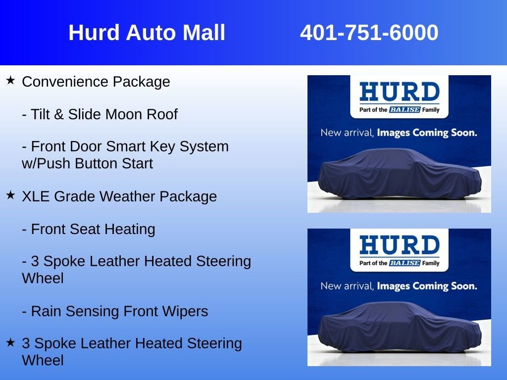 AWD, Black Cloth, 3 Spoke Leather Heated Steering Wheel, Convenience Package, Front Door Smart Key System w/Push Button Start, Front Seat Heating, Rain Sensing Front Wipers, Tilt & Slide Moon Roof, XLE Grade Weather Package.